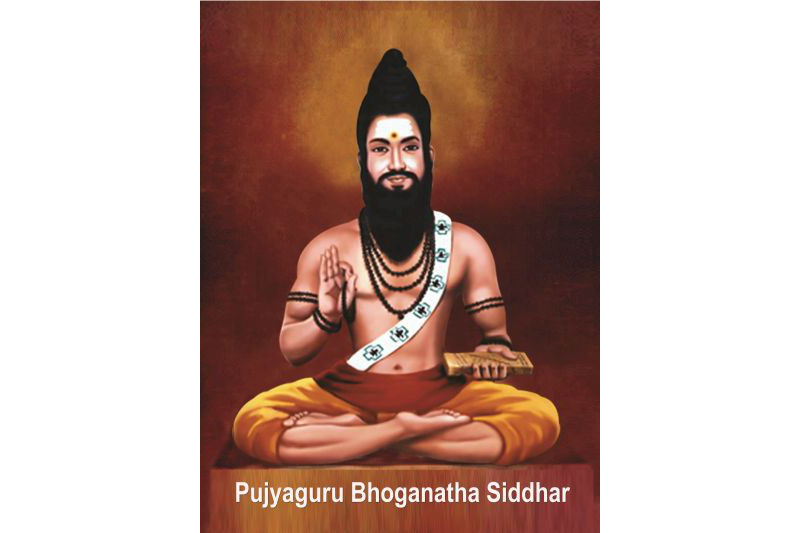 Parama Guru Sri Sri Sri Boghanadha Siddar is one among the eighteen sacred Siddars. The books of the ancient ascetics show that the life of Sri Sri Sri Bhoganatha Siddar spanned for more than twelve thousand years, starting from even before the beginning of Kaliyuga. He obtained initation (upadheysa) on all forms of Meditational practices from his revered Guru Sri Sri Sri Kalinganadha Siddar. As part of his spiritual education, he became an expert practitioner of the Kayakalpa Chikitsha (for enhancing one’s life span). With the aim of attaining Lord Subramania's Holy grace, Sri Sri Sri Bhoganatha Siddar meditated on the hills of the Sathuragiri and Sivagiri. At the age of 14, Sri Sri Sri Boghanadha Siddar was shown the “Saakshatkara”(Apparition) of Lord Subramania at Cuttralam. He later shifted his practice to Kandi Katirgamam in Sri Lanka, before moving onto the Palani Hills in Tamil Nadu, India where he practiced Yoga and Meditation for many years. Sri Sri Sri Boghanadha Siddar created and installed the “Navapashana” idol of Lord Subramania at Palani. At Katirgamam, Sri Sri Sri Boghanadha Siddar initiated Sri Sri Sri Mahavatar Babaji into the practice of Kriya Yoga Sadhana. Before the start of Kali Yuga, Sri Sri Sri Boghanadha Siddar, with the aim of uplifting the common man from the darkness of the shroud of ignorance and the cloak of Maya that confounds the human being from his earthly existence, initiated the confluence of ideas through discussions with numerous spiritual masters. The result of such a massive Divine Exercise manifested in the form of Sushumna Kriya Yoga meditation that shall awaken us to our Divine Self and help us attain the state of utmost bliss – being One with God.